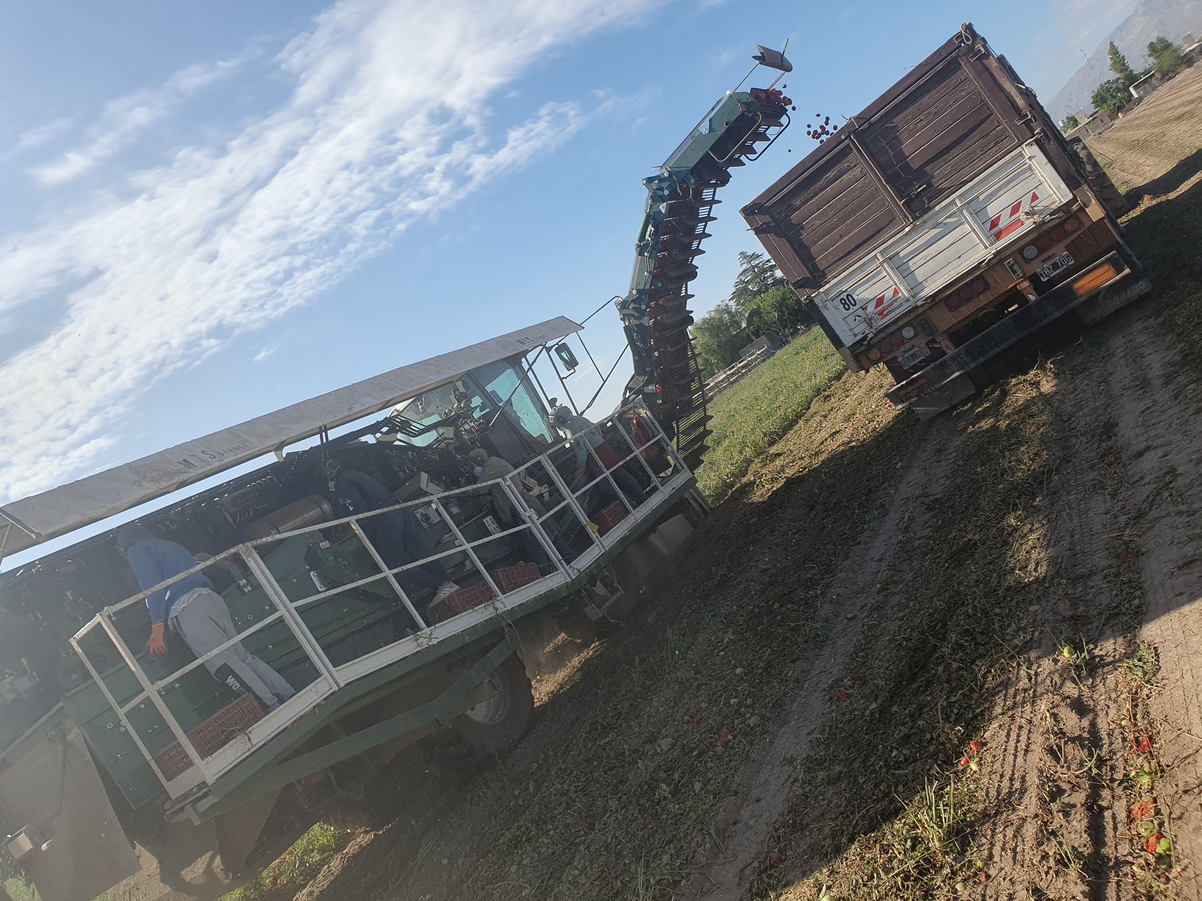 La empresa sanjuanina dedicada a la horticultura desde hace muchos años conocida como Rodríguez Hermanos, en realidad Grupo Guadalupe, opera con bulbos de cebolla en San Juan y Bahía Blanca desde hace décadas. También cultivan tomate para industria y se caracterizan por obtener altos rendimientos por hectárea. Gabriel y Eduardo son dos jóvenes productores y empresarios, que siempre están ocupados y con escaso tiempo. Los visitamos esta semana. En el 2023, tramitaron la compra de una cosechadora automotriz Sandei TH 850, y están a full utilizándola con sus lotes, todos ubicados en Pocito. La máquina es la mejor que hay en estos momentos. Tiene un agitador de 1500 mm y un seleccionador de 50 canales, lo que la hace ideal para cosechar hasta 85 toneladas por hora. Posee un potente cabezal, transmisión hidrostática, motor Volvo Stage V y neumáticos de alto rendimiento, lo que le permite cosechar tomates donde otras máquinas no pueden. El tablero es el más inteligente del mercado. Los controles están ubicados de manera que hacen más eficiente el trabajo del operador y aceleran los tiempos de recolección. Se puede mover toda la máquina utilizando la palanca multifunción situada en el lado derecho. El kit Agri 4.0 instalado permite un intercambio continuo de datos. El costo de recolección ronda 0,020 dólar por kilo, y la eficiencia es muy alta.