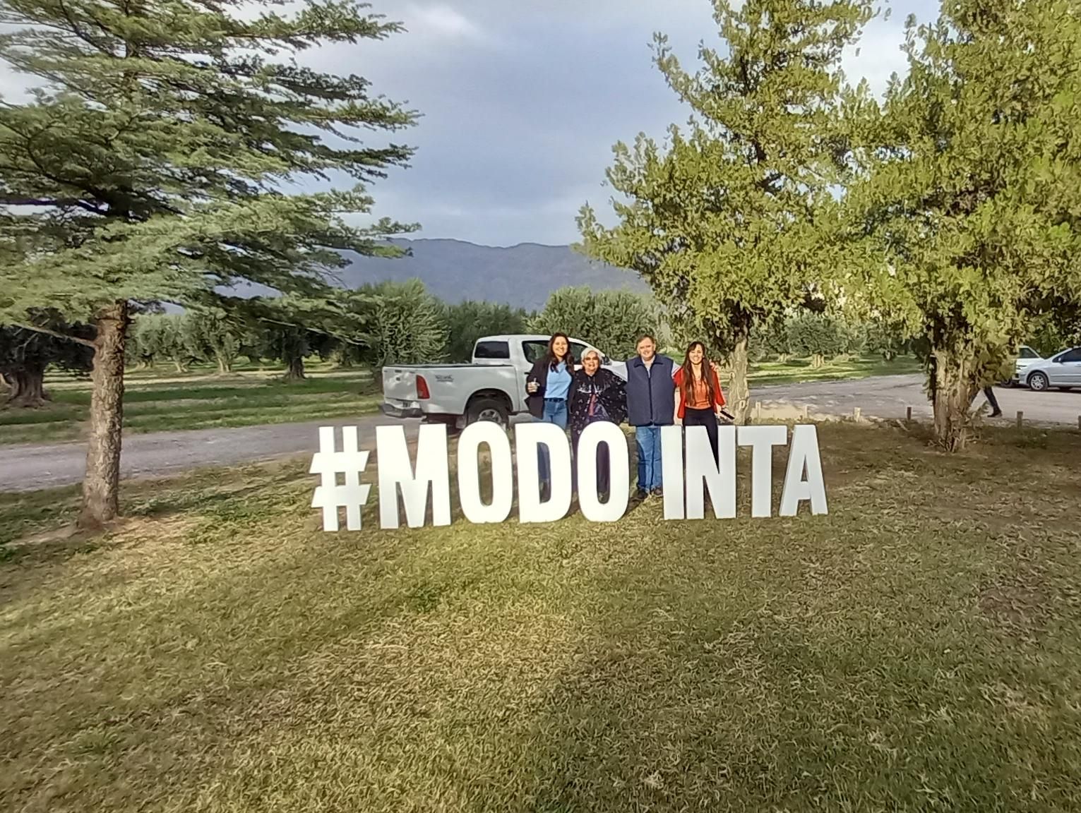 El cartel del encuentro. Todo el público visitante se dio cita para fotografiarse en el cartel de Modo INTA en la Estación Experimental Agropecuaria INTA Pocito.