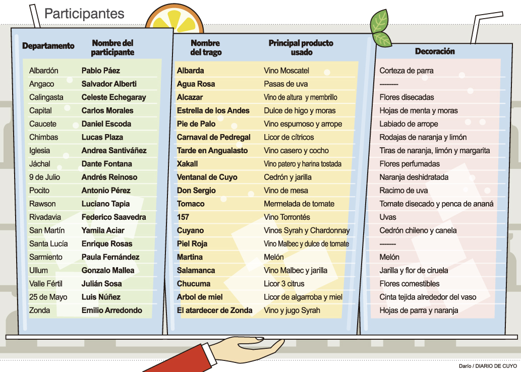 ¿Cómo es esto? Todo comenzó cuando además de proponer que esta competencia de sabores tuviera como objetivo principal que cada cóctel contara con productos representativos de la provincia, los competidores tenían que realizar una investigación previa. Esta debía contener todas las características de cada departamento, tanto sociales como culturales y económicas, además de detallar las razones que motivaron a la utilización de determinados ingredientes, su vinculación con el medio, el nombre del trago y su receta.