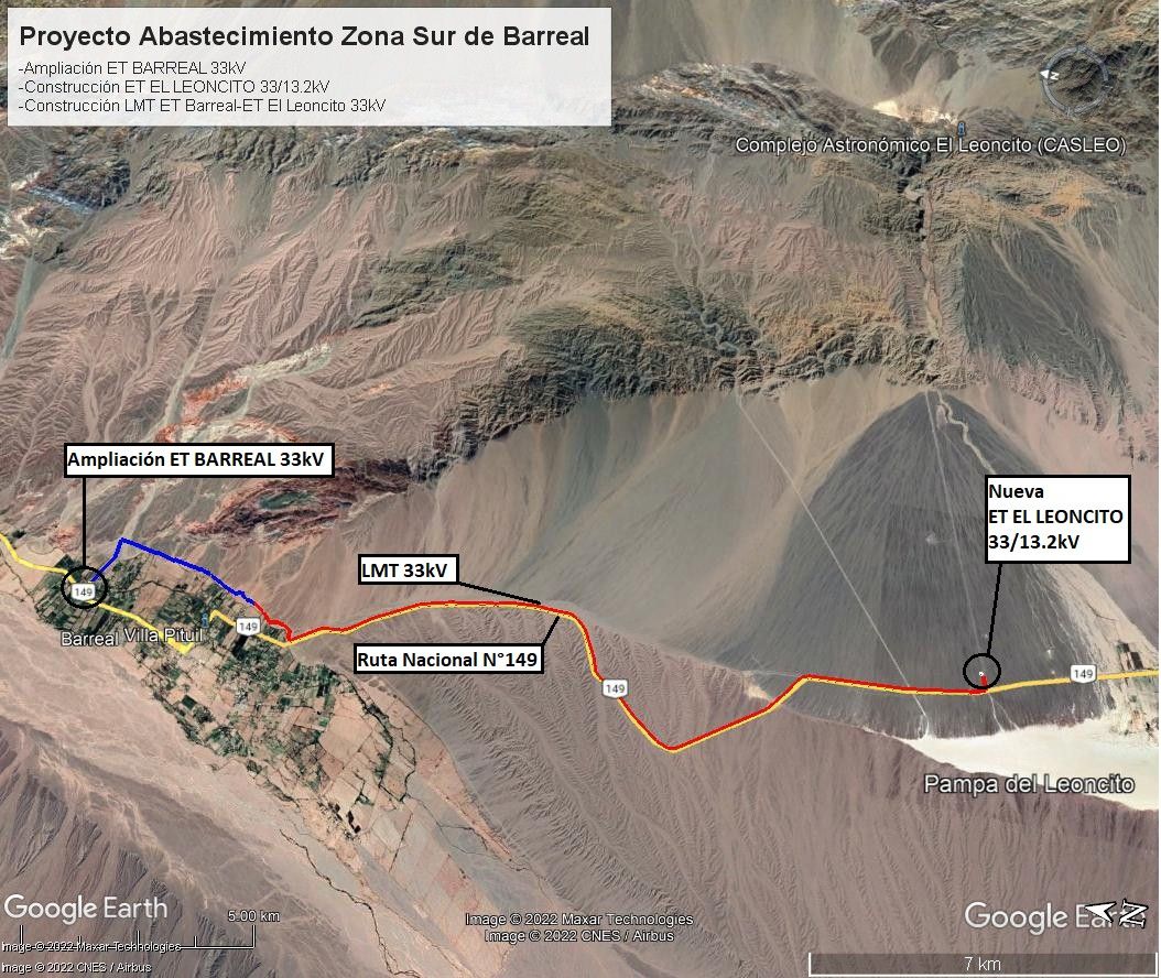 Y comentó que "a esta inversión hay que sumar la necesaria ampliación en 33kV de la existente Estación Transformadora Barreal 33/13.2 kV. Así como la construcción de una línea de media tensión 33kV -LMT- de una longitud total aproximada de 25 kilómetros, que se construirá entre la ET Barreal y la futura ET El Leoncito".