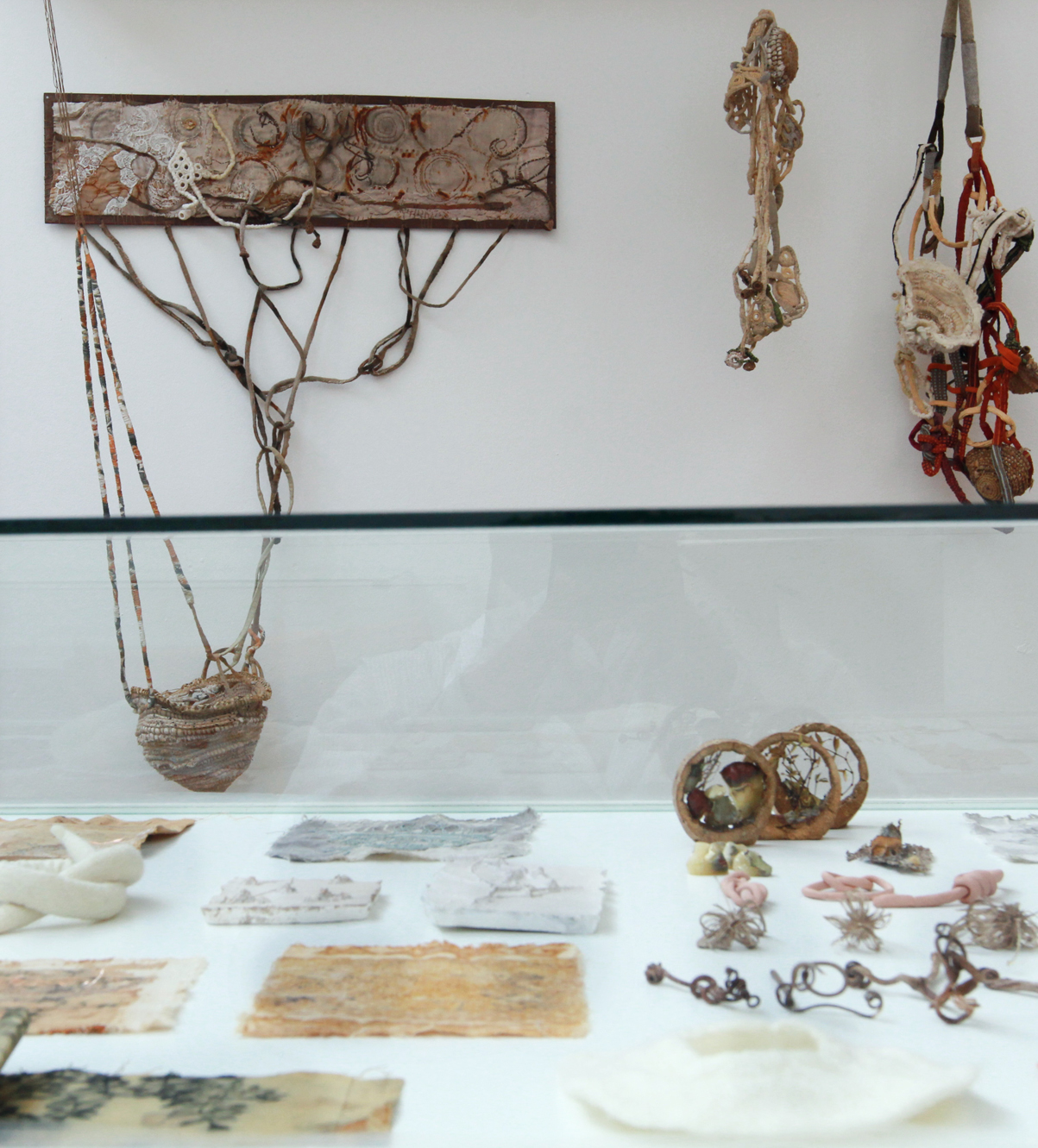 Son tantos y diversos los elementos que se descubren en el desierto que allí se podrán ver incorporadas desde espinas, retortuños, piedras, pedazos de vidrio, todo convertido en obras exhibidas en una vitrina que llama mucho la atención por el resultado final.