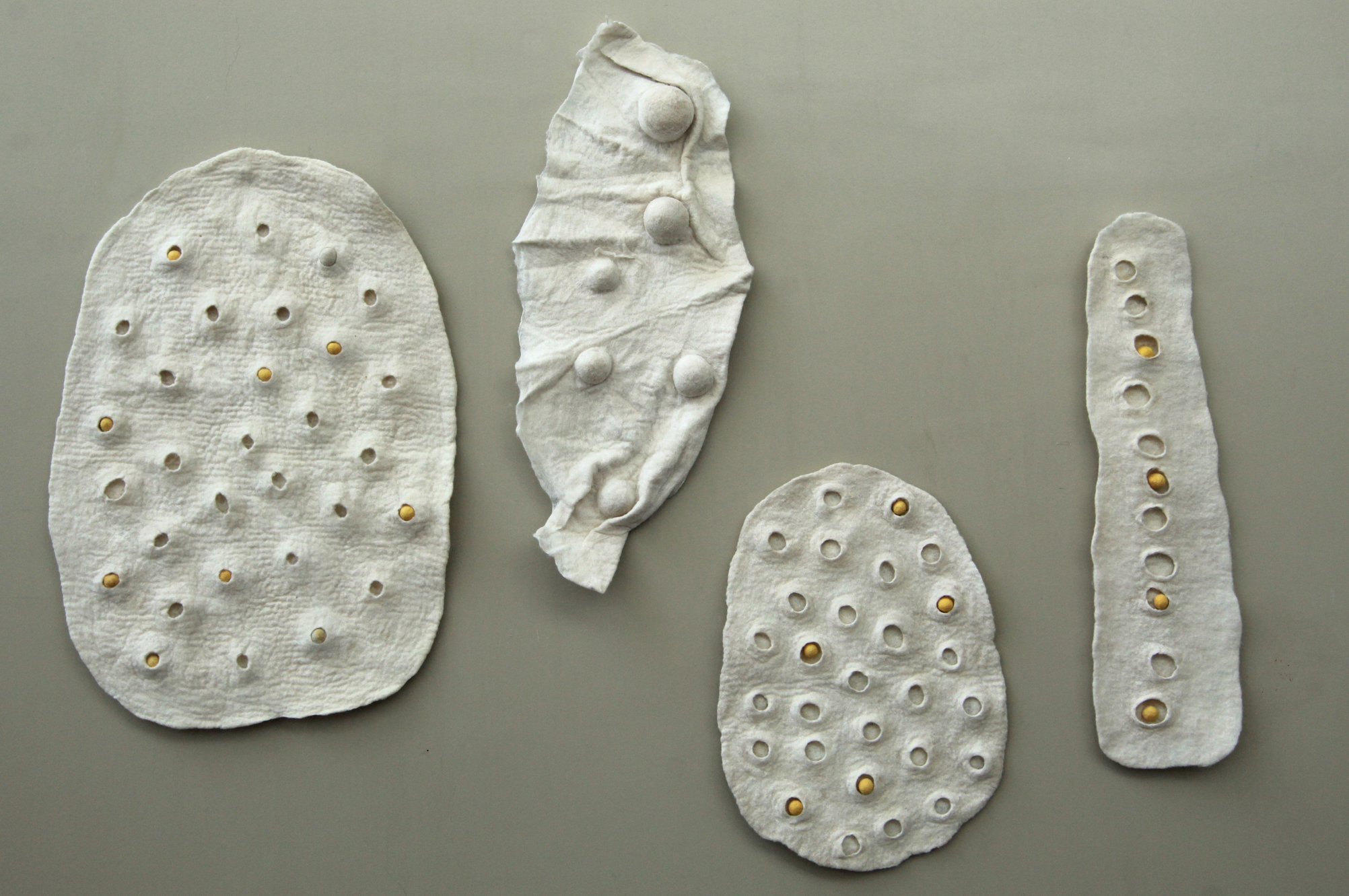 Cecilia Fernández trabajó piezas de fieltro que es una técnica que parte del vellón de la lana a través del amasado con un fuerte acento en texturas que son propias de la zona.