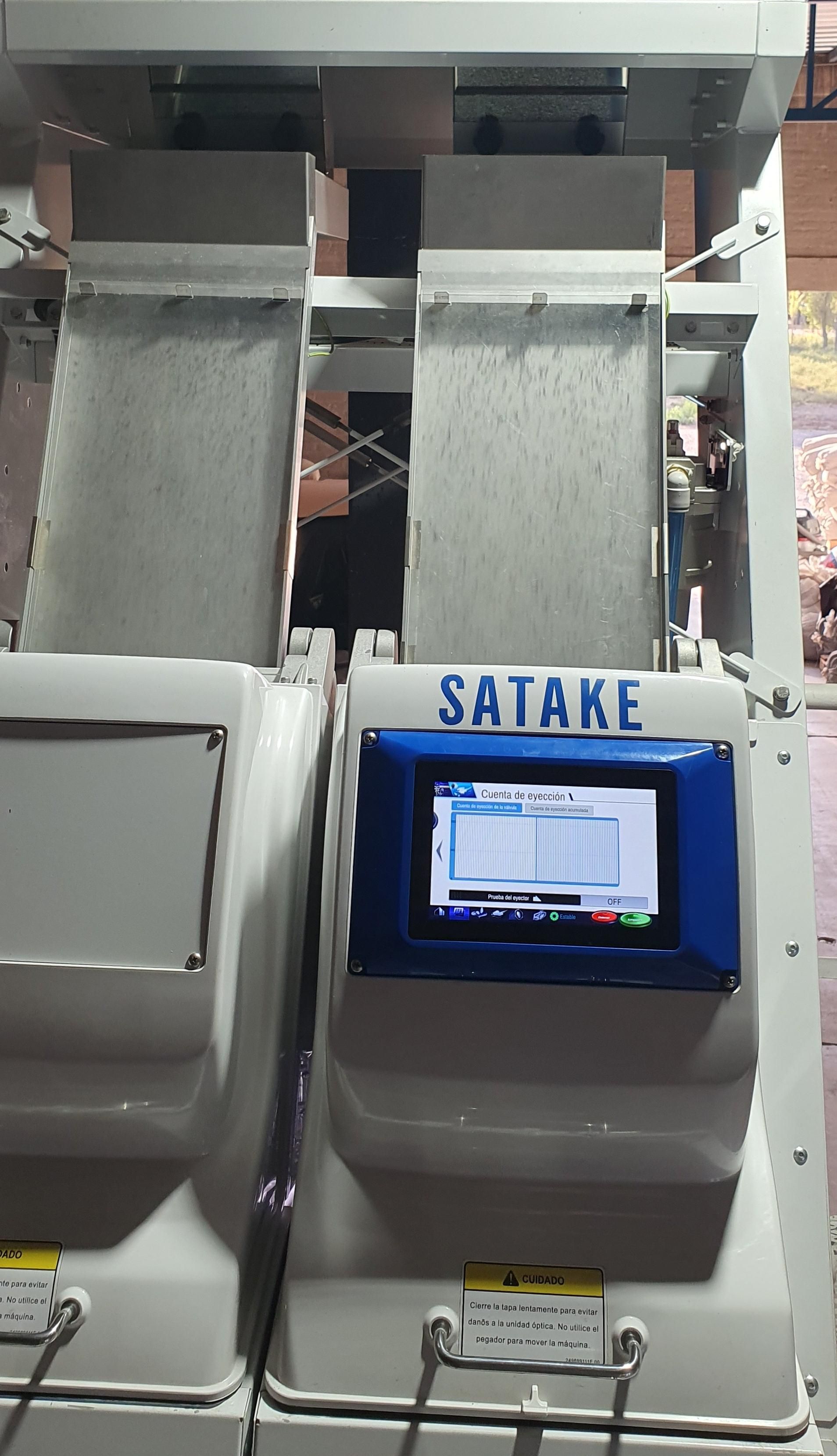 La máquina en cuestión es una Satake Evolution, de dos vías (o canales) que puede trabajar en doble separación , tanto de color como de formas, superando a la maquinaria de anterior modelo, denominada Serie Pikasen alfa series.