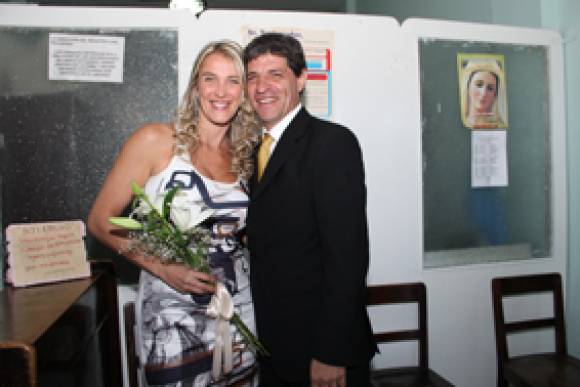 La novia Carla Morel (41) ex integrante de la selección nacional de voley, el novio Fabián Armoa (47) actual técnico campeón de Liga con UPCN. Sellaron su amor con una ceremonia civil, el 11-11-11 en el Registro Nº 1 de Capital, a cargo de la Jueza Dra. Elba Moreno. Auspiciaron de testigos para dicha ceremonia por la novia, Daniel Quiroga Conte Grand propietario de Inmobiliaria del mismo nombre y su esposa Claudia Rodríguez Arquitecta. Por el novio Carlos León 2º Entrenador de UPCN junto a su esposa Mariela Soto Maestra.