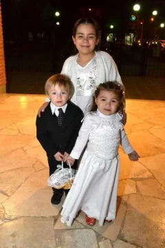 Al cabo de dos años de noviazgo, se casaron en Nuestra Señora de la Medalla Milagrosa, Marianela Soledad Moreno (24), chef; con Matías Daniel Aramburu (25), sonidista. La novia ingresó precedida por un cortejo de sobrinitos: Mía (3) y Tomás (3) Busso, Luján Videla (8) y Estefanía Páez (5). Fueron padrinos Nahuel Nadir Aramburu y Carina Rodríguez.