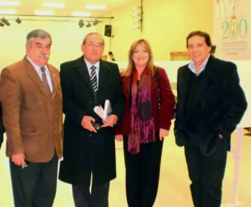 Organizada por la Municipalidad de Albardón, en su Casa de la Cultura; fue presentada una muestra sanmartiniana con objetos y vestidos antiguos alusivos a la gesta del Libertador. Se proyectaron además, videos e ilustraciones de las batallas de San Martín, realizadas por Jorge Rodríguez. En la foto, Carlos Basualdo y Miguel Ángel Licciardi, de la Asociación Sanmartiniana; con Cristina López y su esposo, Juan Abarca, diputada provincial e intendente del municipio respectivamente.