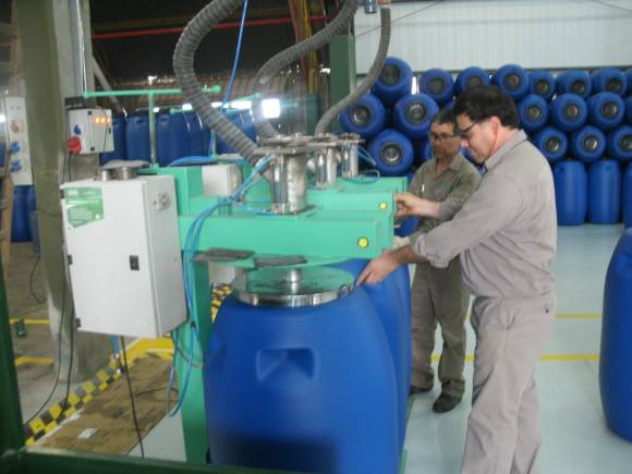 La nave alberga una máquina sopladora adquirida en Taiwán con capacidad de procesamiento de materia prima de 400 kg/ hora y una capacidad de producción aproximada de 40 tambores/horas. La mayor exportación de productos con estos tambores es Brasil.