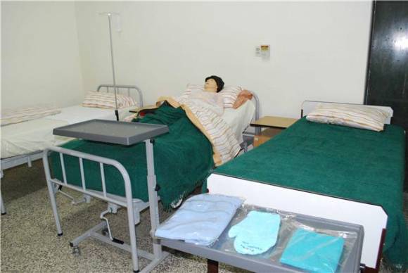 A simple vista es una habitación de un centro hospitalario cualquiera. Camas ortopédicas, sabanas color crudo, mesas rodantes para acercar al paciente la comida, sillas de ruedas y el carro con todos los insumos y el instrumental médico necesario para atender estas situaciones. Inclusive tiene enfermos, que presentan cuadros distintos. Y si bien son cuerpos de plástico, tienen la particularidad que su piel es blanda entonces pueden ponerle inyecciones y sueros, pueden someterse a traqueotomías, análisis de sangre, cateterismos, sondas, entre otros pasos de un tratamiento.