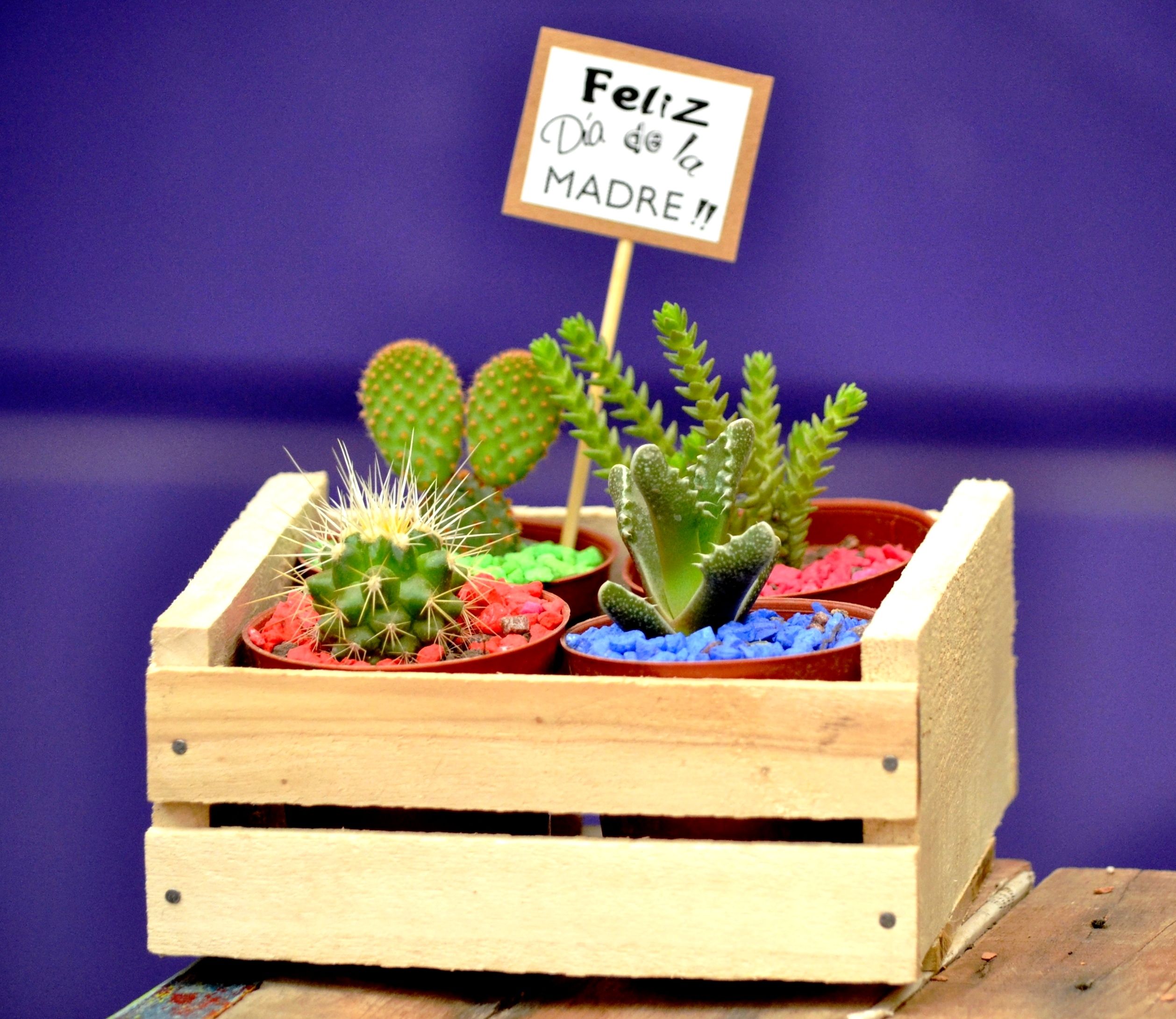 Cajón Promo Día de la Madre (2 cactus/2 Suculentas + Cajón), $200