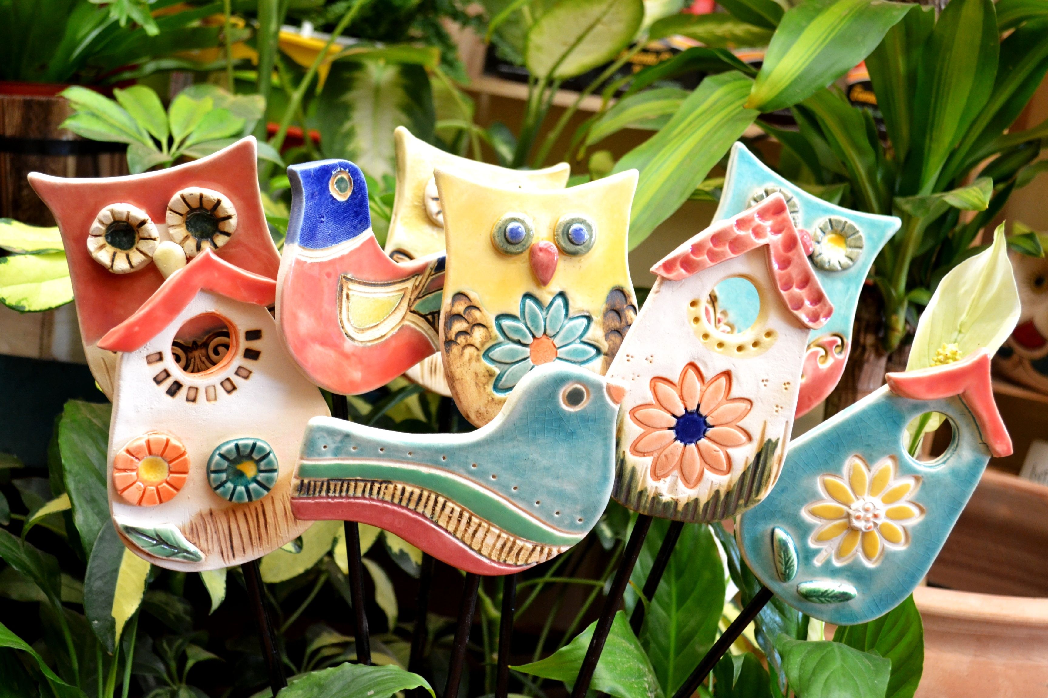 Tutores de cerámica Búho/Casita/Pájaro, $180