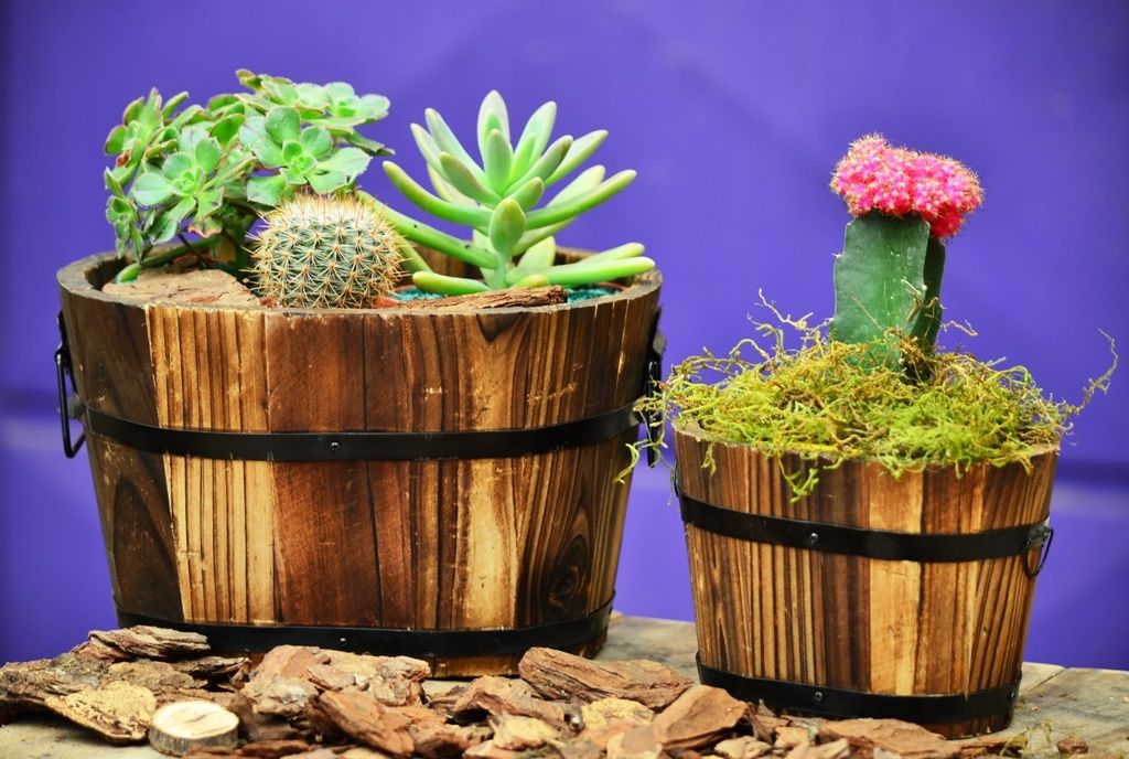 Barricas de madera con Cactus, $340