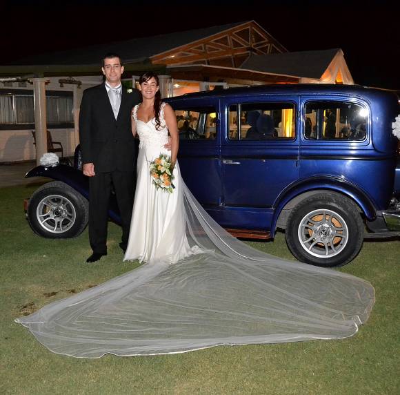 Celebraron en "La Bertha", con el catering de Marcelo Martinazzo para algo más de doscientos invitados. La novia lució un diseño de Guillermo Godoy quien con su equipo se ocupó también del peinado y maquillaje. De luna de miel partieron hacia las playas dominicanas de Punta Cana.