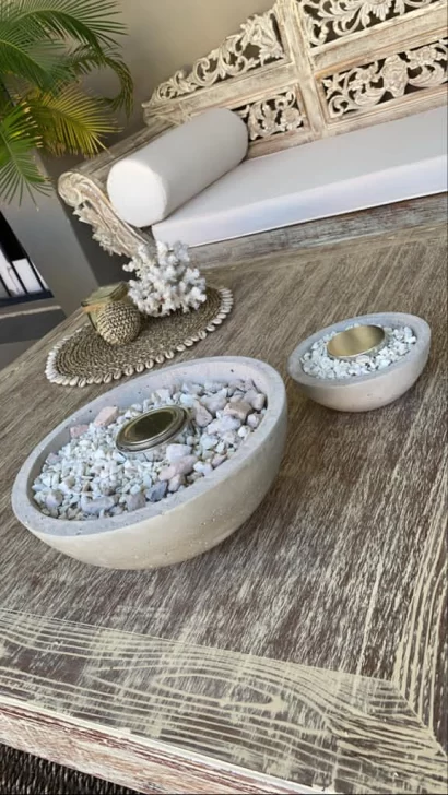 piedras: aislantes, decorativas y volcánica, opción con tachas metálicas. $3.750