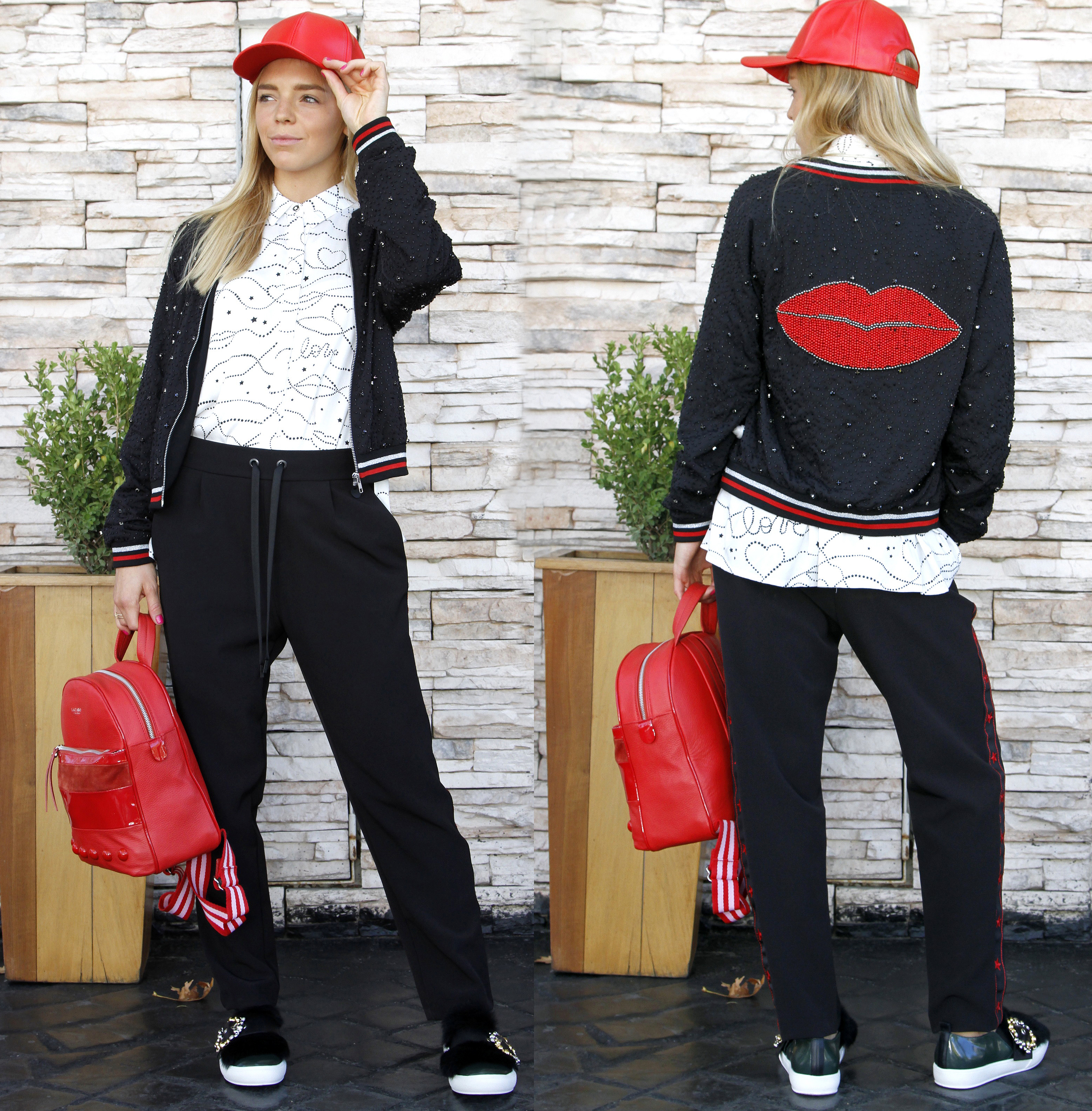 Mochila con detalles de besos identidad de Jazmín Chebar, $6.850