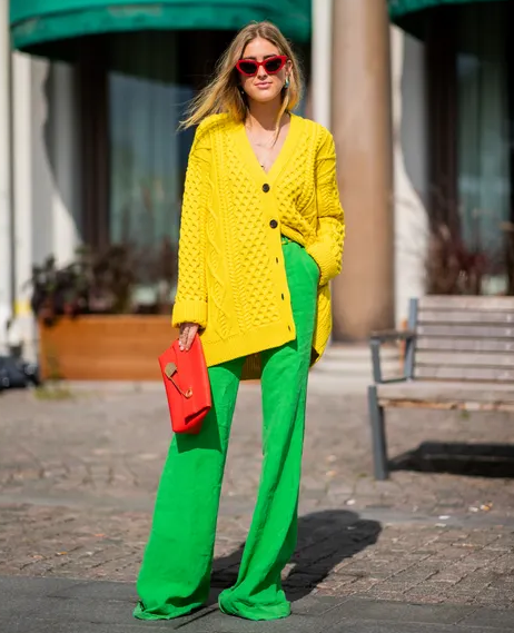 Por otra parte, una de las tendencias que está de vuelta son los pantalones de colores. En tanto los conjuntos siguen siendo una excelente opción para un look versátil y original en tu día a día. Por ejemplo, se puede usar un mismo tono en tu prenda superior e inferior para armar un look monocromático.