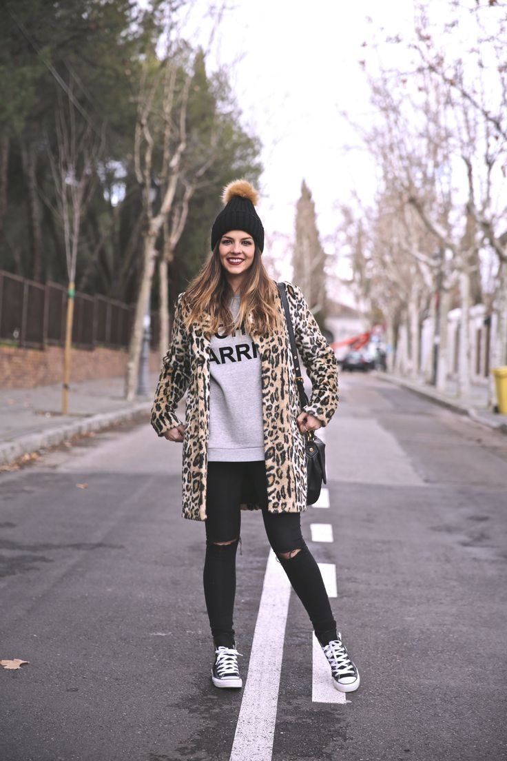 Los abrigos con estampas animales este año se fusionan con prendas deportivas; buzos joggin frisados con letras o números, que incluso no están ni cerca en al paleta cromática. Se pueden acompañar con leggins ripped o babuchas de algodón.