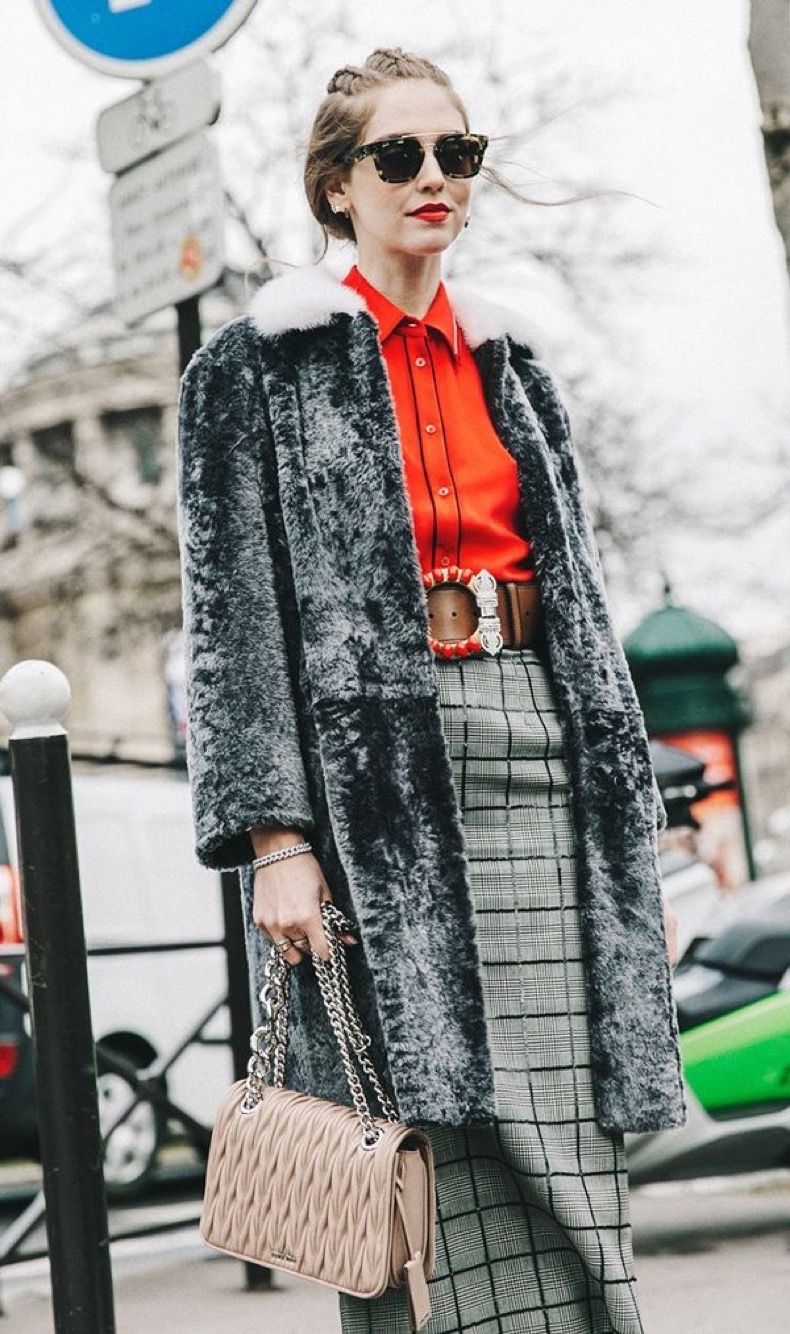 Complementos: Abrigos lisos o de tweed y calzado, bijou minimalista y carteras lisas.