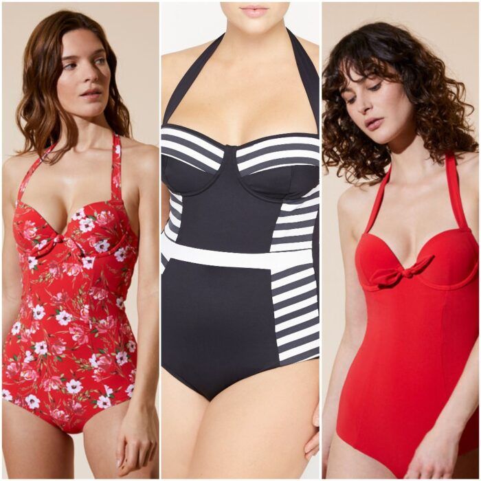 Con aro: El aro en el corpiño de los bikinis también se suma a las enterizas. Además de brindarle al busto un máximo apoyo y contención, aporta un estilo retro que nos recuerda a las mujeres de los años ’50.