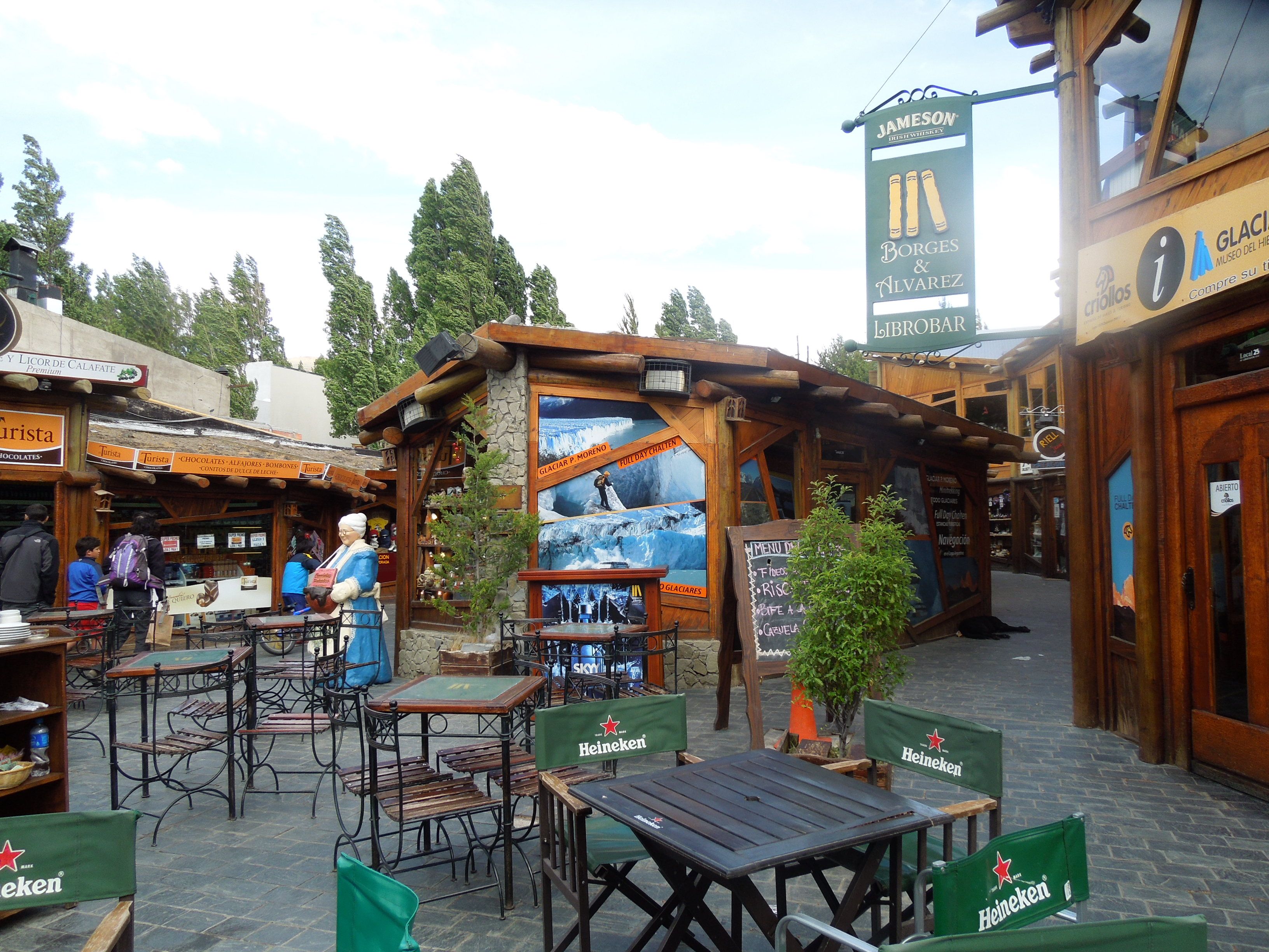 El centro de Calafate gira en torno a la avenida del Libertador, su columna vertebral, a cuyos costados están los de productos regionales, souvenires, bares y restaurantes. También, está la plaza Perito Moreno que concentra a la Municipalidad y a la pequeña Parroquia Santa Teresa, construida con madera. Cuenta con más de 8000 camas para alojamiento de los turistas y la mejor época para visitarla es entre setiembre y abril ya que permite las actividades al aire libre como la navegación por el Lago Argentino, o recorrer los cerros aledaños en camionetas 4 x 4 . A sol 6 km. del centro está el Glaciarium y Museo del Hielo que consta de un Centro de Interpretación con 9 salas de exposiciones, y una sala de cine 3D para conocer la existencia de los glaciares. En el subsuelo está el Glacio Bar, un lugar increíble donde todo es de hielo, mesas, sillas y copas en las que se pueden servir la bebida que uno guste. Para ingresar hay que colocarse una ropa especial que haga más aguantable el frío y solo se puede permanecer 25 minutos en el interior de este bar tan especial de 80 m. cuadrados.