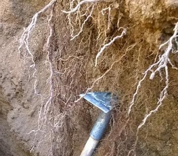 En las fotos se puede entender bien en imágenes. Platero recalcó que en la mayoría de los parrales o espalderos, explorados a nivel raíz, cuando hacen una calicata, es recurrente ver no solamente escasez de raíces activas, sino también funcionales.