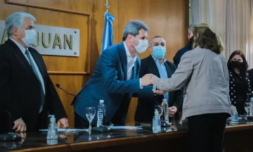 El gobernador Sergio Uñac, junto al ministro de Producción, Andrés Díaz Cano; la directora de la Estación Experimental Agropecuaria San Juan de INTA, Mónica Ruiz; las codirectoras del Centro de Referencia en Evaluación Sensorial de Aceite de Oliva y Alimentos de la UCCuyo, Susana Mattar y Adriana Turcato, presidió el cierre del X Concurso Internacional de Argoliva 2021 y la distinción de los aceites ganadores. El encuentro, que en esta edición se realizó de manera virtual, tuvo por objetivo poner en valor la producción de aceitunas y aceite local, un espacio destinado a dar visibilidad a la actividad olivícola de la región a través de diversas actividades. La iniciativa organizada por el Gobierno de San Juan a través del Ministerio de Producción y Desarrollo Económico, el Consejo Federal de Inversiones (CFI), la Cámara Olivícola, la Universidad Católica de Cuyo (UCCuyo) y el Instituto Nacional de Tecnología Agropecuaria (INTA).