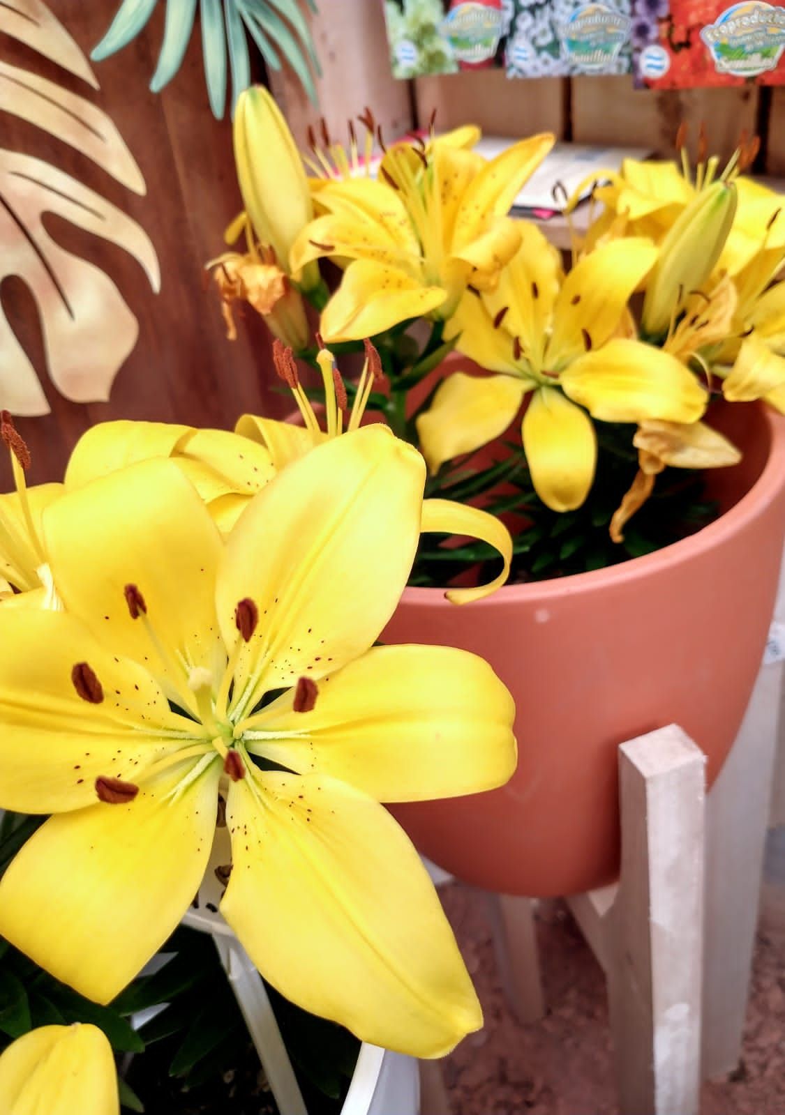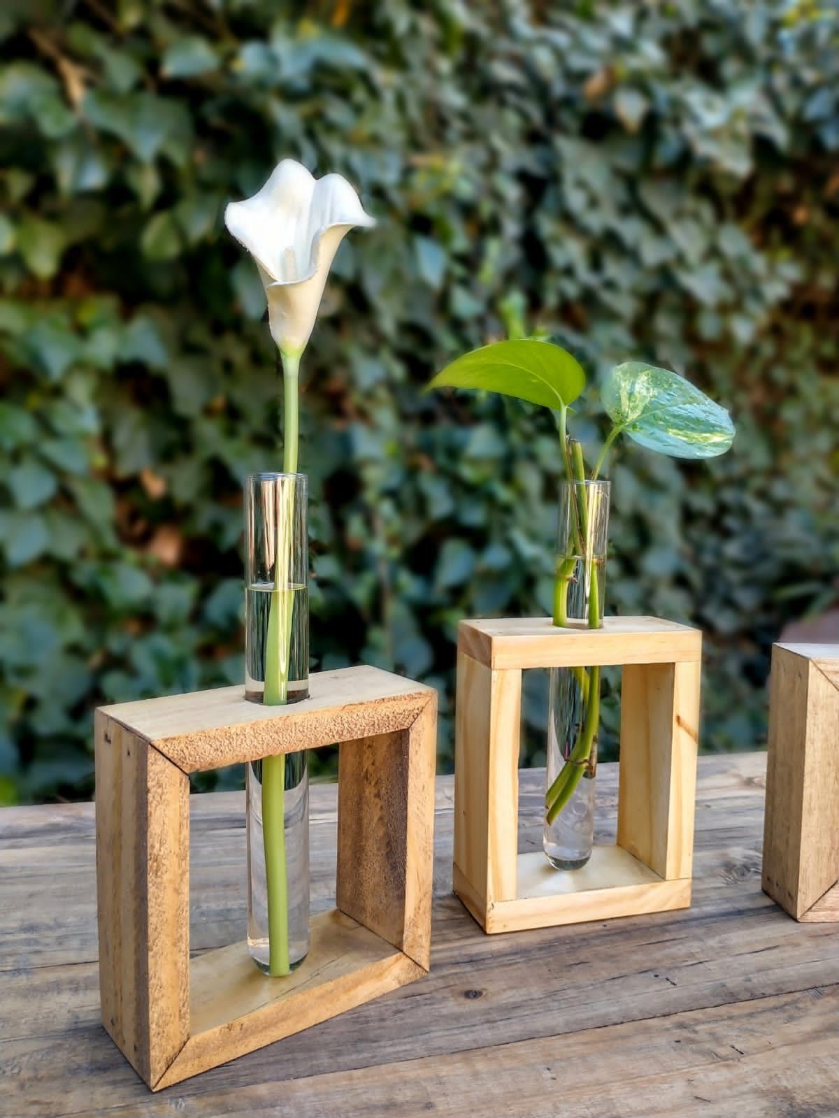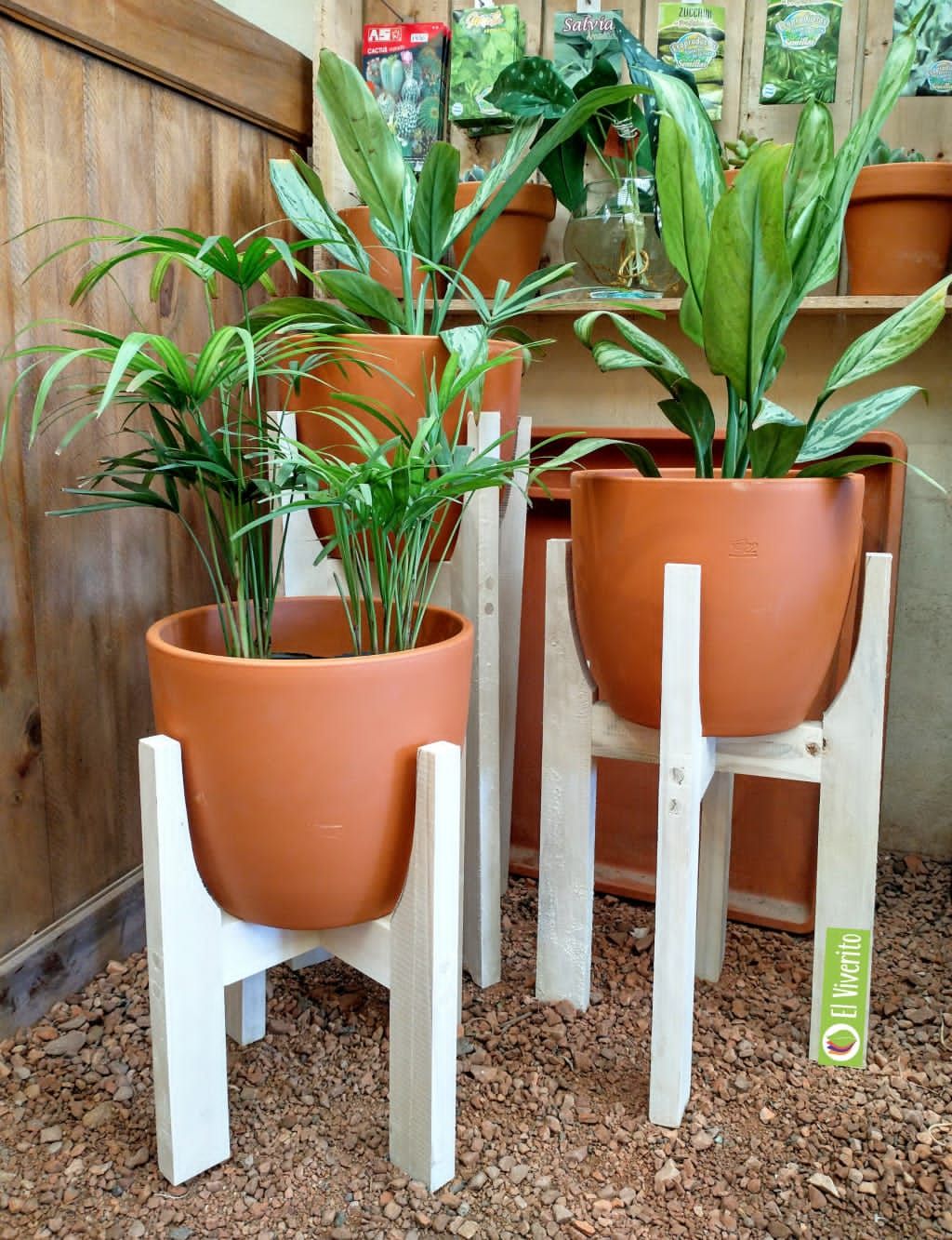 Base nórdica de madera con maceta de cerámica o plástica, desde $4800