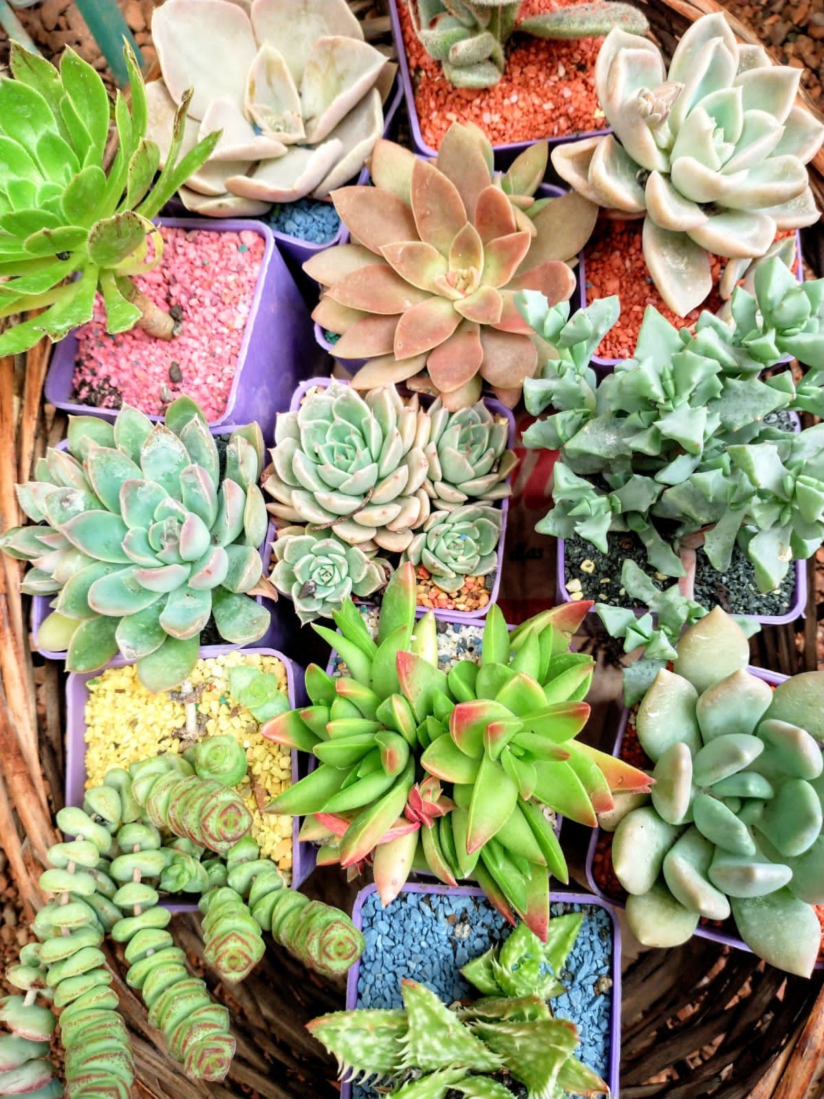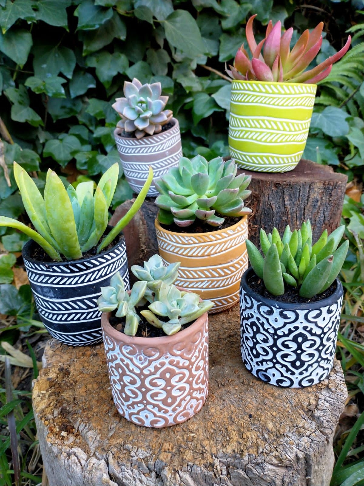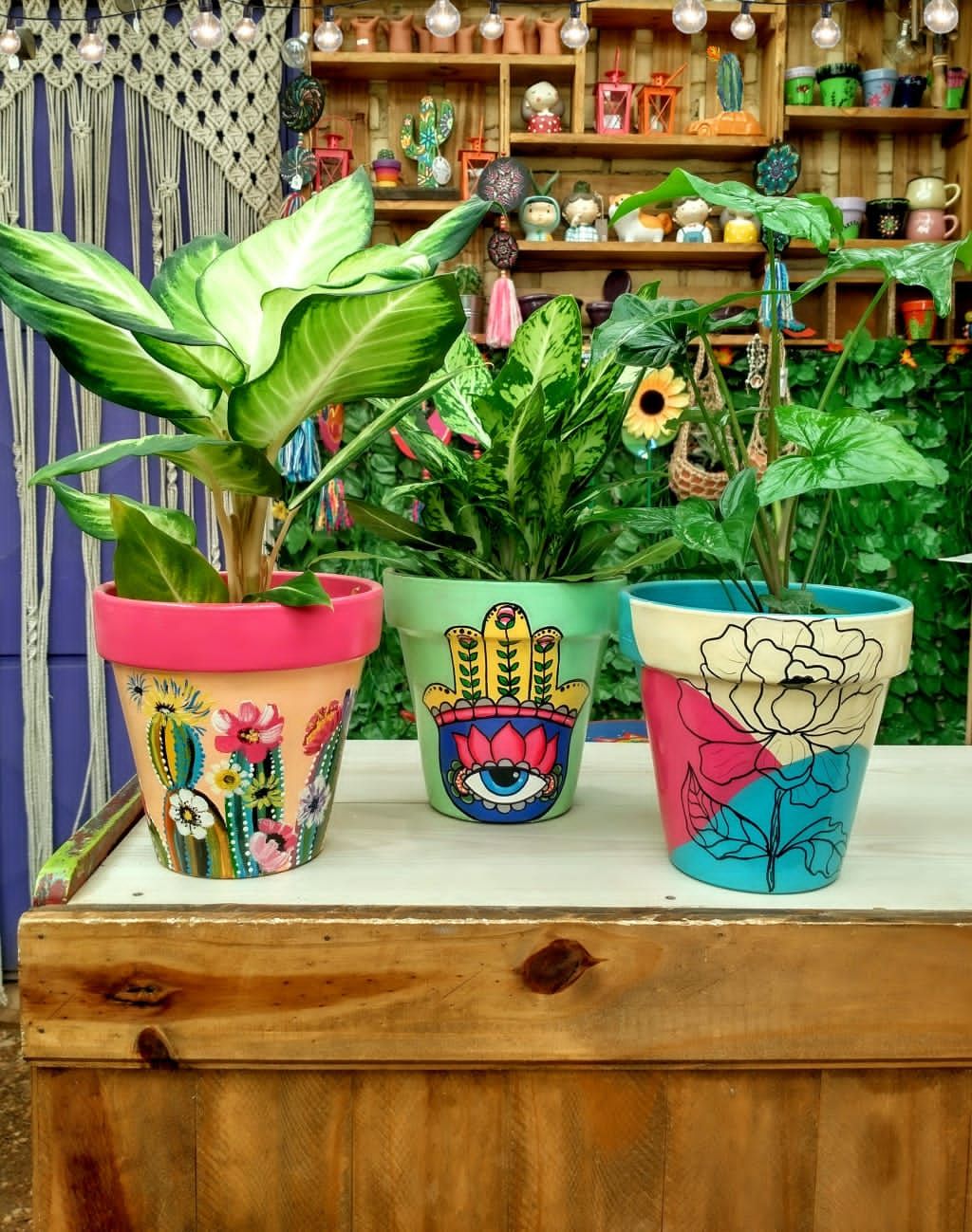 Macetas pintadas, variedad de colores y tamaños