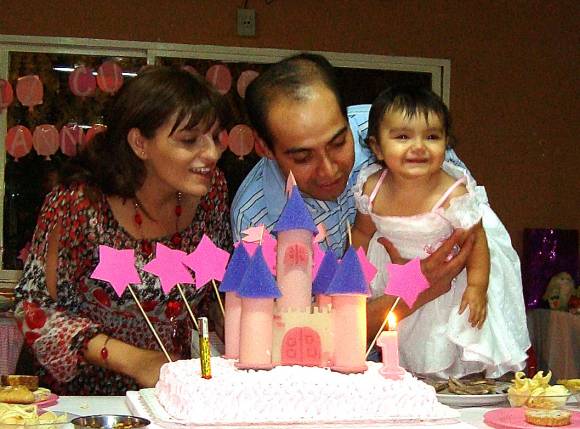 Anna Martina es hija de Claudia Garay (36), maestra jardinera, casada con Gustavo Ariel Andrada (36), ingeniero electrónico. Cumplió su primer año y lo festejaron en los salones del camping de UDAP. Tiene un hermanito mayor, Lautaro Joaquín (4). Su vestido cumpleañero fue un obsequio de su abuelo materno, Víctor Osvaldo Pinto, radicado en Bolivia y que no pudo estar con su nieta. Pero sí estuvieron sus otros abuelos, Rosalba del Carmen Garay, Humberto Andrada y esposa, Adela Ibáñez. También la acompañaron sus padrinos bautismales, Elsa Natalia Garay y Mauricio Andrada. En la foto, la cumpleañera con sus papis apagando su primera velita.