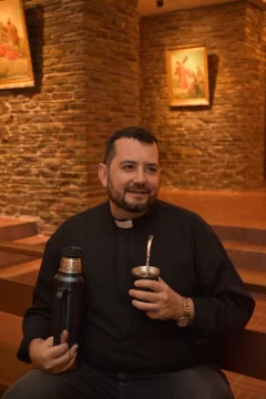 El mate es su compañero fiel y testigo de sus palabras. Es que el padre Andrés Riveros, presbítero de la iglesia San Juan Bautista, la Catedral de San Juan, tiene -probablemente entre otras virtudes- el don de la palabra justa, la palabra amorosa y contenedora que cada oído necesita escuchar. Por eso que mejor que él, que se encamina a los 15 años de sacerdocio, luego de su formación en el Seminario local y tras su paso, como él mismo define por "muchas realidades de la Diócesis” por haber llevado su fe a "parroquias rurales” como la de Angaco y ahora estar al frente a la "parroquia más urbana de la provincia”, para compartir un mensaje de todo corazón para esta Nochebuena y esta Navidad, teniendo en cuenta que son momentos llenos de fe y esperanza pero en un contexto de una gran crisis económica que afecta a todo el país y que marca el día a día de quienes buscan subsistir o de quienes ya empezaron a pensar en otros horizontes pero a su vez de grandes pérdidas de vidas sanjuaninas, de una guerra mundial y hasta de la gloria del Mundial de Fútbol, recientemente alcanzado.