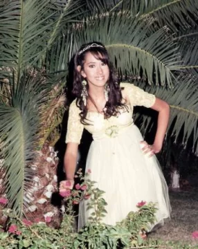 Karen Elizabeth Barboza es una excelente alumna en la Escuela Normal General San Martín. Estudia danza clásica y le encanta leer noticias y revistas. Celebró sus quince años con una fiesta en Albardón. Es hija de Leticia Viviana Falcón (46), casada con Félix Rodolfo Barboza (50). Tiene tres hermanos: María José (20), Yamila Viviana (17) y Aylén Guadalupe (9). Acompañaron sus abuelos, Darío Saturnino Falcón y esposa, Paulina Luisa Morales. También tuvo padrinos de quince, Analía Montaño y esposo, Oscar Díaz.