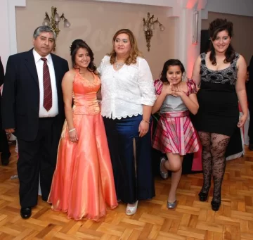 Estuvieron sus abuelos y bisabuela: Humberto Peralta y esposa, Ana Farías, Nélida Justa Fernández de Berenguer y Ana Peralta de Peralta. También la acompañaron sus padrinos bautismales, Tomás José Strada y esposa, Liliana Berenguer. La quinceañera lució un diseño de Gladys Montilla quien con su staff se encargó también del maquillaje en tanto que el peinado fue obra de Sebastián, para Miguel Ángel Alessi.