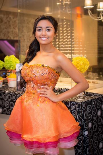 La quinceañera lució un original y colorido vestido diseñado por Florencia a Tornello, con el peinado y maquillaje de Miguel Ángel Alessi y staff. Lucía es alumna en el colegio San Francisco de Asís, con muy buen desempeño. Participa en el Coro Pre Universitario desde hace tres años con un registro de soprano. Su mamá la describe como una jovencita de personalidad sencilla, carismática y solidaria. Le gustan las matemáticas y por ello se inclina hacia la carrera de Ciencias Económicas o Administración de Empresas. También, disfruta cantar y lo hizo durante la cena con el grupo Doce cuerdas, que dirige Cristian Acosta.