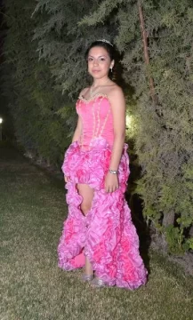 Jésica lució un original diseño de Gladys Montilla en color fucsia y con profusión de volados, acompañados con sandalias plateadas. La peinó Freddy Robledo y la maquilló Estefanía Morando. Asiste al Colegio Monseñor Orzali con excelente desempeño. Es muy responsable e independiente, le gusta cantar y bailar además de tener su propio facebook. Para su mamá, es una jovencita de muy buen carácter.