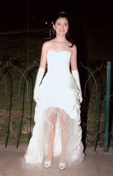 El vestido de la quinceañera fue realizado por Alicia Quiroga de Barón, con el peinado de Margarita Vaca y maquillada por Paola Alcaide.