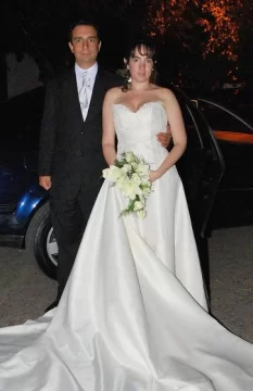 La novia lució un diseño de Francisco Zito, con el peinado de Carlos Kuperbaser y maquillaje de Ana María Escobar. De luna de miel partieron hacia las islas venezolanas de Margarita y Coche.