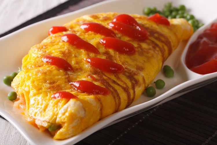 Aparte, en un bol, bate los huevos y agrega sal. En una sartén coloca un poco de aceite y cuando este a temperatura, vuelva el huevo batido. Cuando este comience a cocinarse, coloca el arroz que hemos preparado sobre el huevo y con la ayuda de una espátula, dobla la tortilla sobre el arroz, envolviéndolo. Observa hasta que esté bien cocido y ya está listo para servir y disfrutar.