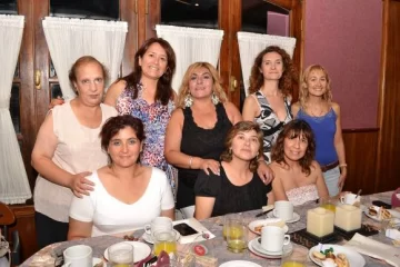 Un grupo de docentes del nivel primario, pertenecientes a la Escuela "Capital Federal", ubicada en Villa del Carril y ya centenaria; se reunieron en La Ley para despedir a tres de sus pares con distintos destinos. La primera, Fabiana Riveras, profesora de Música, arribó a la jubilación; la segunda, Andrea Sánchez, trasladó su cargo a la Escuela "San Juan de la Frontera", en Rivadavia y la tercera, luego de dieciséis años como suplente, perdió su cargo y eligió otro en la Escuela "Provincia de Salta", también en Rivadavia. Una amable tarde de té con nostalgia y pequeños recuerdos en llaveros artesanales, obsequiados para que recuerden su paso por el establecimiento. En la foto, Mirtha y Luana Sánchez, Fabiana Riveras, María Eugenia Coll y Andrea Sánchez. Sentadas, Claudia Gutiérrez, Marcela Sossa y Patricia Herrera.