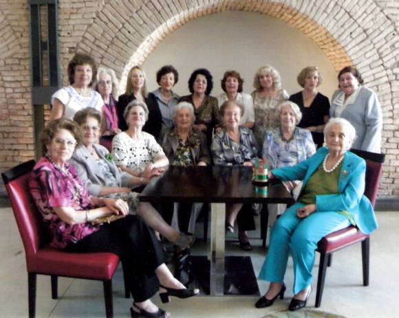 Un nuevo aniversario cumplió la Asociación de Amigos de la Casa Natal de Sarmiento. Ello motivó un almuerzo celebrado en La Cava, del Hotel Del Bono Park, que congregó a todas sus socias. En la foto, la comisión directiva en pleno: Olga Ontiveros de Montión, Lola Adarvez de Muñoz, Rosa Bettalemi de Plana, Alida Peña de Cruciani, Elizabeth Cisela, María Teresa Forradellas de Herrera y Elsa Boero. Detrás se ubicaron, Mafalda Guerrero, Martha Iranzo, María Clara Bustos, Norma García de Jameson, Ernesta Rombolá del Belbruno, Graciela Santamaría, presidenta; Elena Basso de Conti, secretaria general; Beatriz Oviedo Coria, directora de la Casa Natal de Domingo F. Sarmiento; con Susana Moreno de Atencio.
