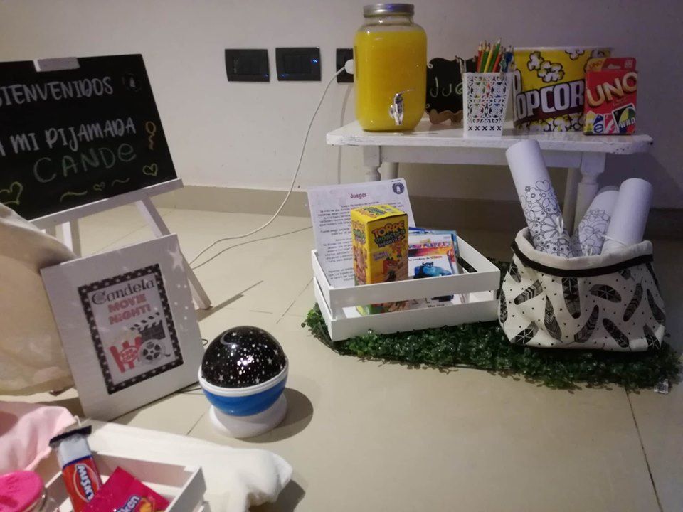 Por ejemplo Johanna Herrera y Mariana Ortiz de Pijamadas Llamas en Pijama llevan además una manta central con almohadones para reunión grupal, como así también, juegos de mesa, pendrive con películas y videos para bailar toda la noche. "Para comer les llevamos un carro con pochoclos, bolsas de gomitas, alfajores y chocolates y un dispenser de jugo. Los papás no tienen que preocuparse por nada, salvo la comida de esa noche. Podemos hacer una noche mágica según los gustos de los niños: banderines, guirnaldas, nubes, cactus, flamencos, entre otros”, cuentan.