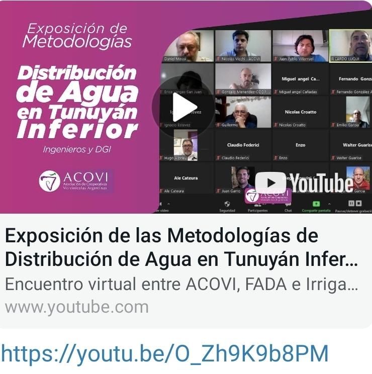 Martín agregó "en la Metodología de Distribución del Agua en el Río Tunuyán Inferior, para el modelo nuevo mendocino, ahí están entregando por demanda. Y no entregan agua por tiempo, sino por caudales variables. El productor tiene hasta un par de días antes de regar por turno, para cargar por vía Whatsapp su necesidad de riego, a la sección responsable del Departamento de Irrigación; y le llega lo que necesita en el momento justo. Es mucho más eficiente. No se pueden salir del total anual correspondiente (por estimación) y del derecho a superficie que tiene cada productor".