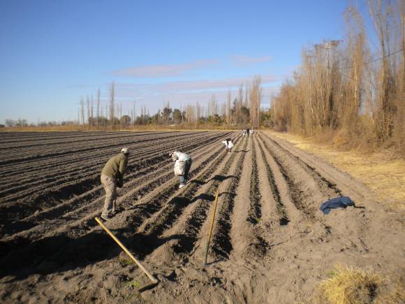 Esta fotografía tomada esta semana en la zona del Médano de Oro en conflicto por los pozos de Hidráulica (ver nota página 6) nos indica la realidad del chacarero sanjuanino. Su trabajo es plantar y a eso se ha dedicado toda su vida, y por tradiciones, por ello siguen adelante a pesar de los inconvenientes innumerables que tienen. Este transplante de cebolla, en la periferia de la cuestionada zona, tuvo que ser asistida por el agua de pozo de un particular para ser regada en el mismo día del transplante, como reza el manejo del campo. Sufrida labor la del chacarero que aporta su verdura diariamente a todos los sanjuaninos.