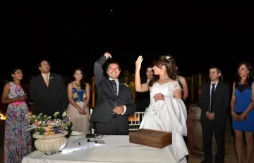 Una década de novios los llevó finalmente ante el altar de la parroquia de Santa Lucía. Allí se casaron Melisa Belén Rosa (26), profesora en Química y Federico Darío Riveros (29), enólogo. La boda fue al caer la tarde y la bendijo el sacerdote Pepe Fuentes. Fueron padrinos sus padres, Nélida Graciela Manzano y esposo, Manuel Rosa, Ana María Castro y esposo, Ricardo Riveros. Testigos, Matías González y Silvia Pastén. Para el civil, Patricia y Melina Riveros, Mauro García, David Sánchez, Leandro Rosa, Ana Ruiz, Gustavo Plana y Liliana Amaya. Festejaron en la Bodega Jaled, con la coordinación de Augusta Jaled, junto a doscientos invitados. En el momento del baile, actuó el grupo musical "The King of Banana". La novia lució un vestido realizado por Isabel Manzano, de Pocito.