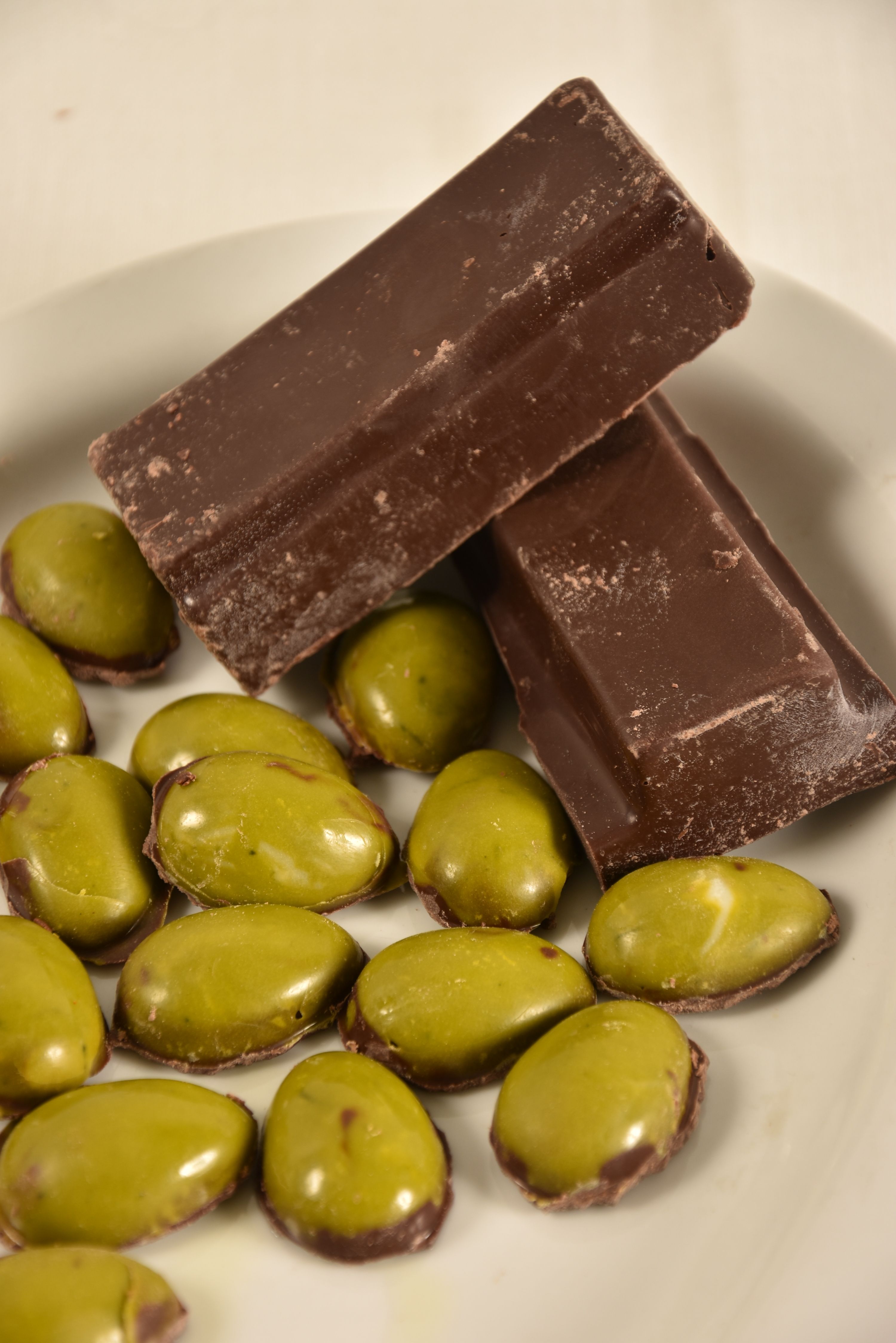 "Me gusta hacer algo diferente y que sorprenda. Que al morderlo explote la boca de sabor”, tal como define a su último hallazgo: bombones de cien por ciento de chocolate amargo rellenos de una ganache de chocolate con aceite de oliva Virgen Extra, con lo que logra una pasta suave y cremosa. Estos bombones no sólo son interesantes una vez que se muerden. Sino que ya desde la vista llaman la atención porque la superficie de cada bocadito simula toque decorativo con tintes naturales y comestibles de color verde, de por medio- media aceituna, claro que al comerla, el gusto es super amigable y dulce.