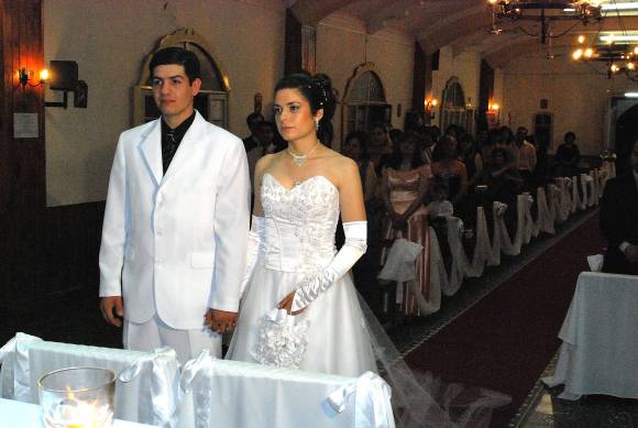 Con una década de novios a cuestas, se casaron en Nuestra Señora de Fátima y tuvieron como padrinos, por la novia, sus primos Martín Villavicencio y esposa, Gisela Almada. Por el novio, sus hermanos, Oscar Alberto Sánchez y esposa, Verónica Leticia Jofré. Testigos, Noelia y Maximiliano Giuliani. Para el civil, Patricia Allis de Martínez, Nelson García, Lorena y Marcelo Sánchez.