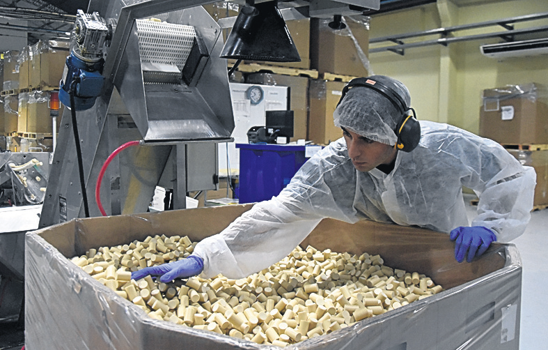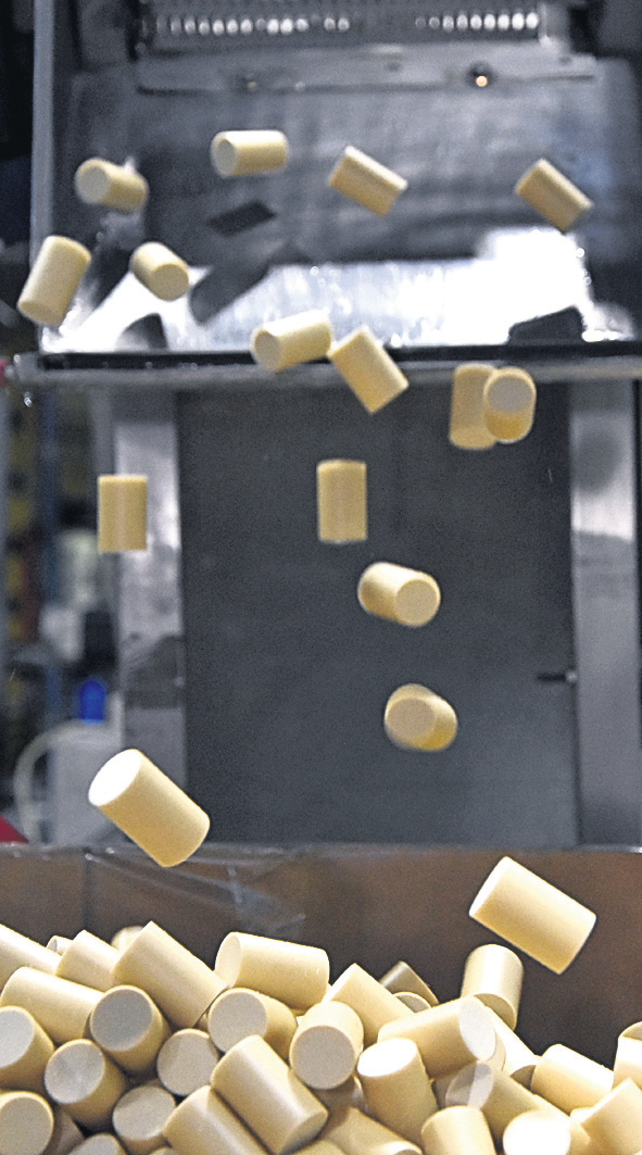 En San Juan la firma elabora los corchos sustentables con polímeros de caña de azúcar y el proceso incluye primero la "extrusión" o fundición de los polímeros en uno solo, luego el "chambos" o estampado y biselado, la impresión, luego el tratamiento y envasado, y finalmente el almacenamiento y expedición según explicaron.