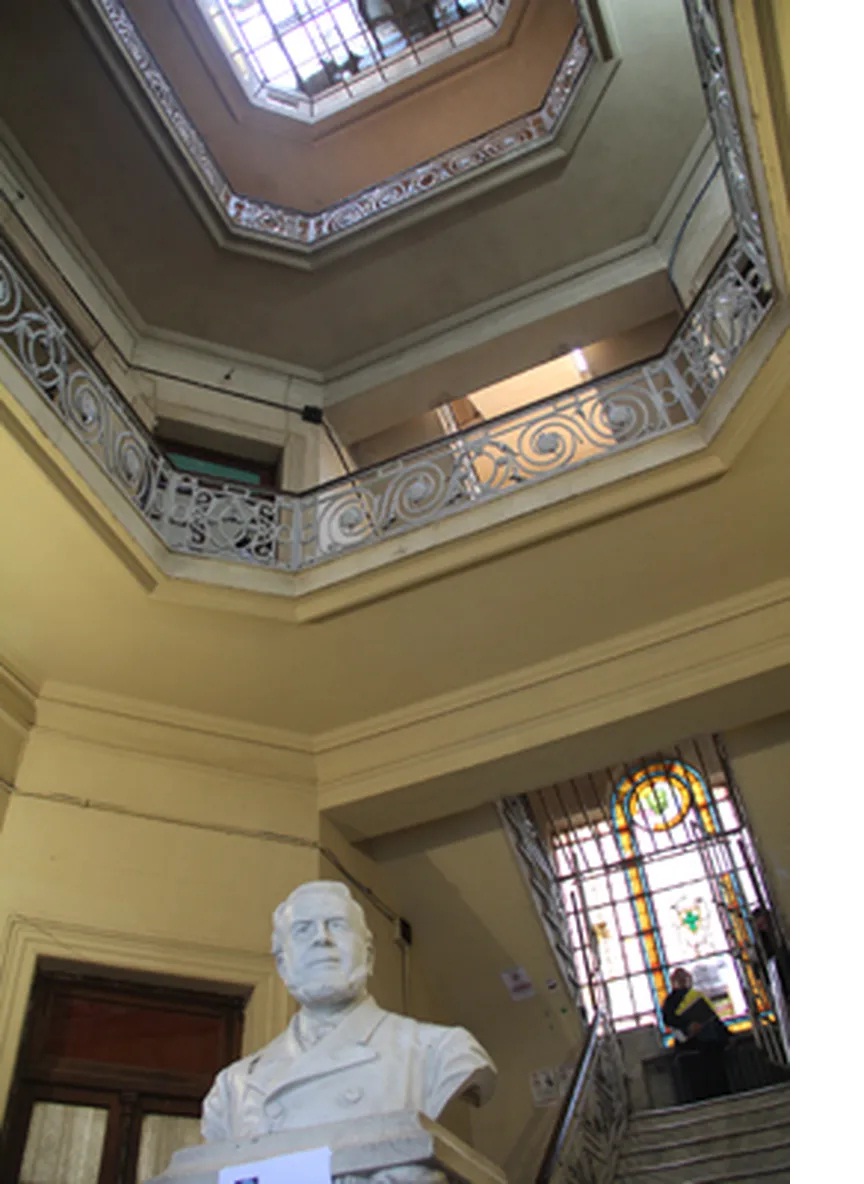 Las incipientes pero necesarias tareas de mantenimiento en el interior del Hospital Rawson. La actual restauración, puesta en valor y actualización tecnológica de la Plaza 25 de Mayo.