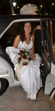 Celebraron en el camping de la Mutual Comercial de Santa Lucía, con el catering de Alberto Muñoz para algo más de doscientos invitados. El vestido nupcial fue realizado por Encarnación Rodríguez y Gladys Muñoz, con el peinado de Federico Cuenca.