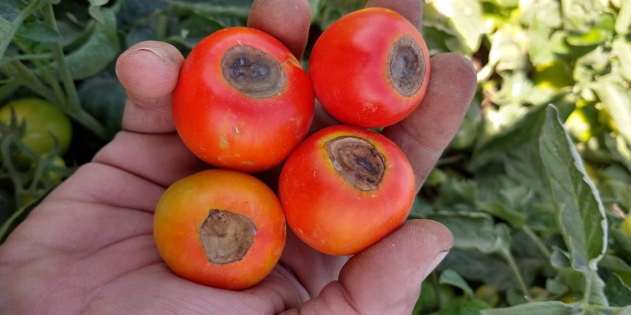 Si hay aparición de "culo seco" ó "culo negro" (ver foto en esta página) que es una necrosis basal en el fruto de tomate, que se dio en cantidad.