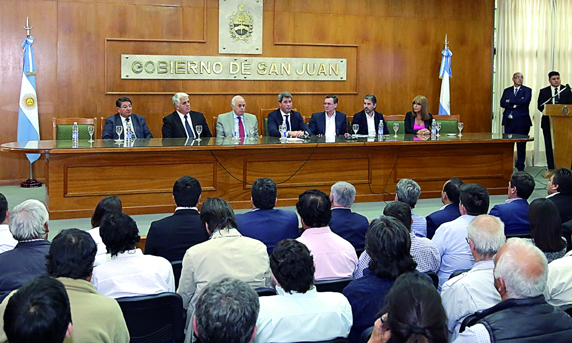 Este jueves, en horas de la mañana, el gobernador Sergio Uñac firmó un acta muy importante para potenciar el desarrollo productivo de las distintas comunidades de los departamentos Jáchal e Iglesia, con fondos mineros. Ante una nutrida concurrencia, ya que asistieron todas las entidades vinculadas, tanto privadas como estatales, en la sala "Dr. Rogelio Cerdera", el primer mandatario procedió a la firma del acuerdo para continuar con el proyecto de Desarrollo de Actividades Locales en la Cadena de Valor Minera.