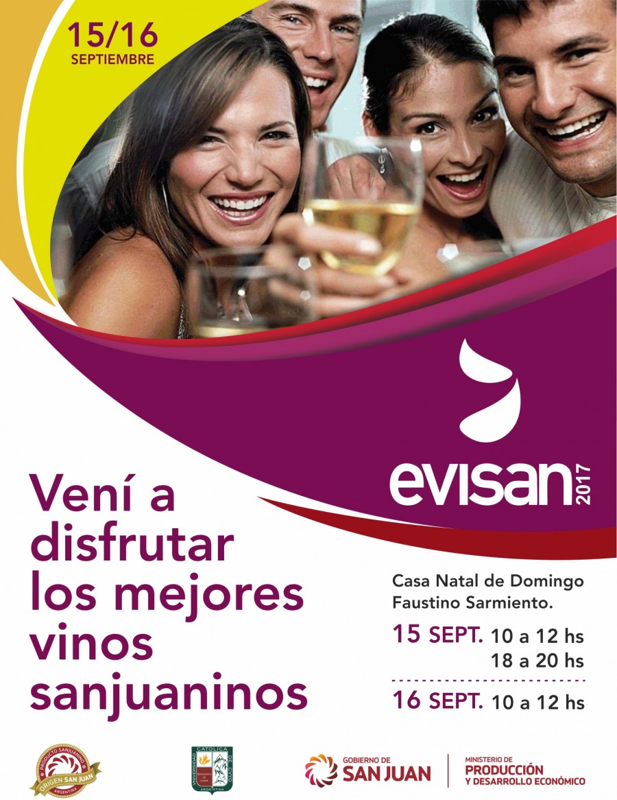 El próximo 22 de septiembre se realizará la XXI Evaluación de Vinos de San Juan (Evisan), a las 10 horas en el Salón Le Parc. Evisan es organizado por la Universidad Católica de Cuyo con el apoyo del Gobierno de San Juan a través del Ministerio de Producción y Desarrollo Económico.